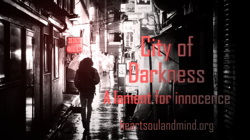 Morning sun trickles over the walls in the city of darkness, ending the night. But this night was not as dark as other nights. The wounded traveler healed as the lamplighter brought compassion to the city. Now our traveler sees she is Love. As the city wakes, a search for Love begins.